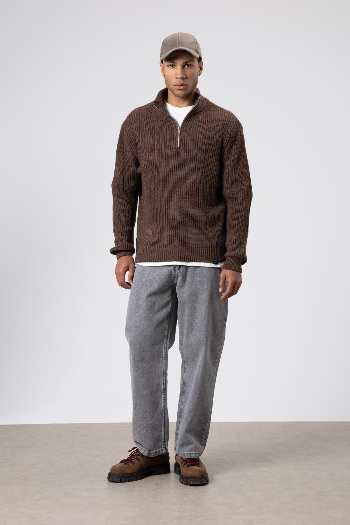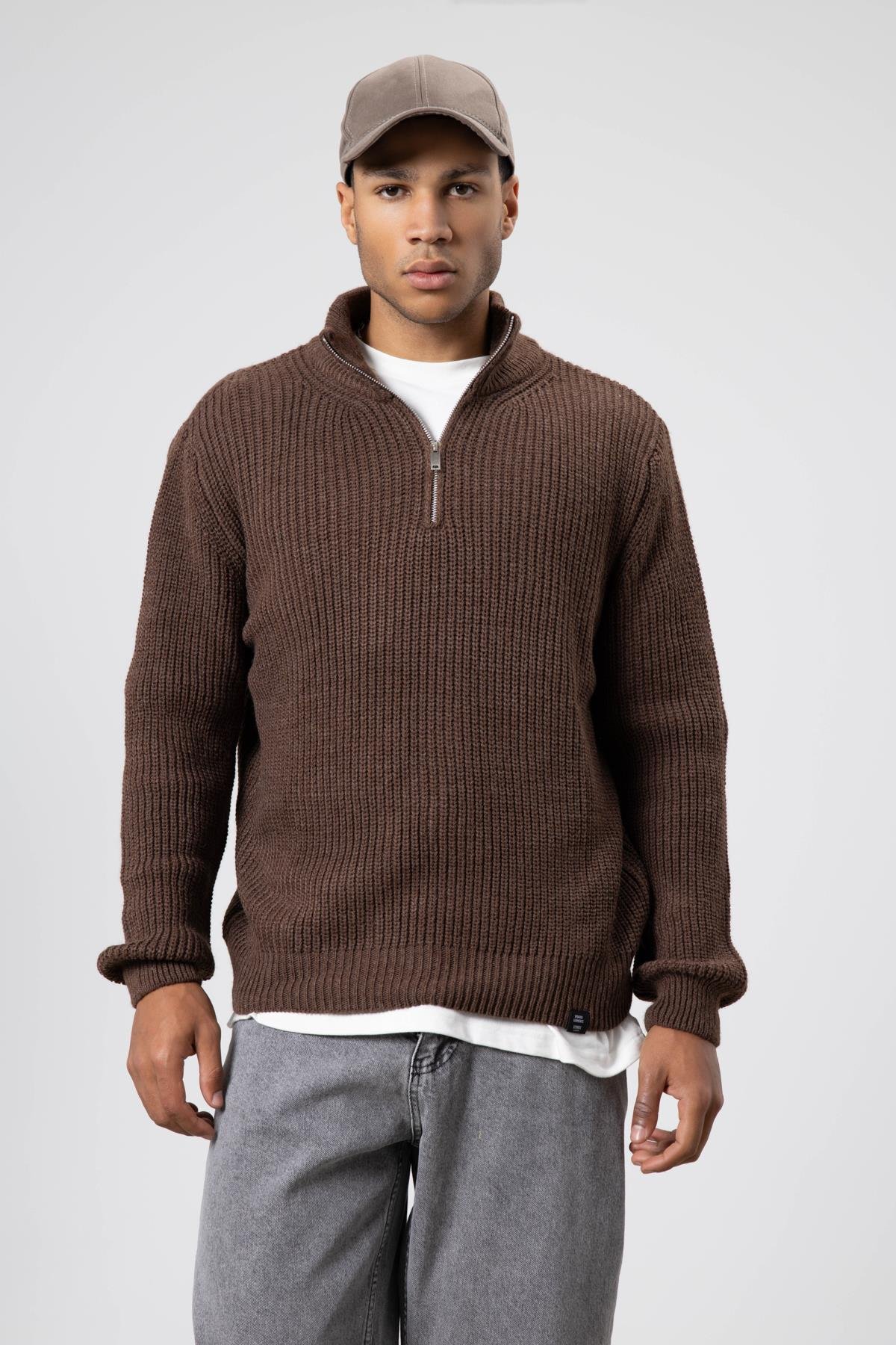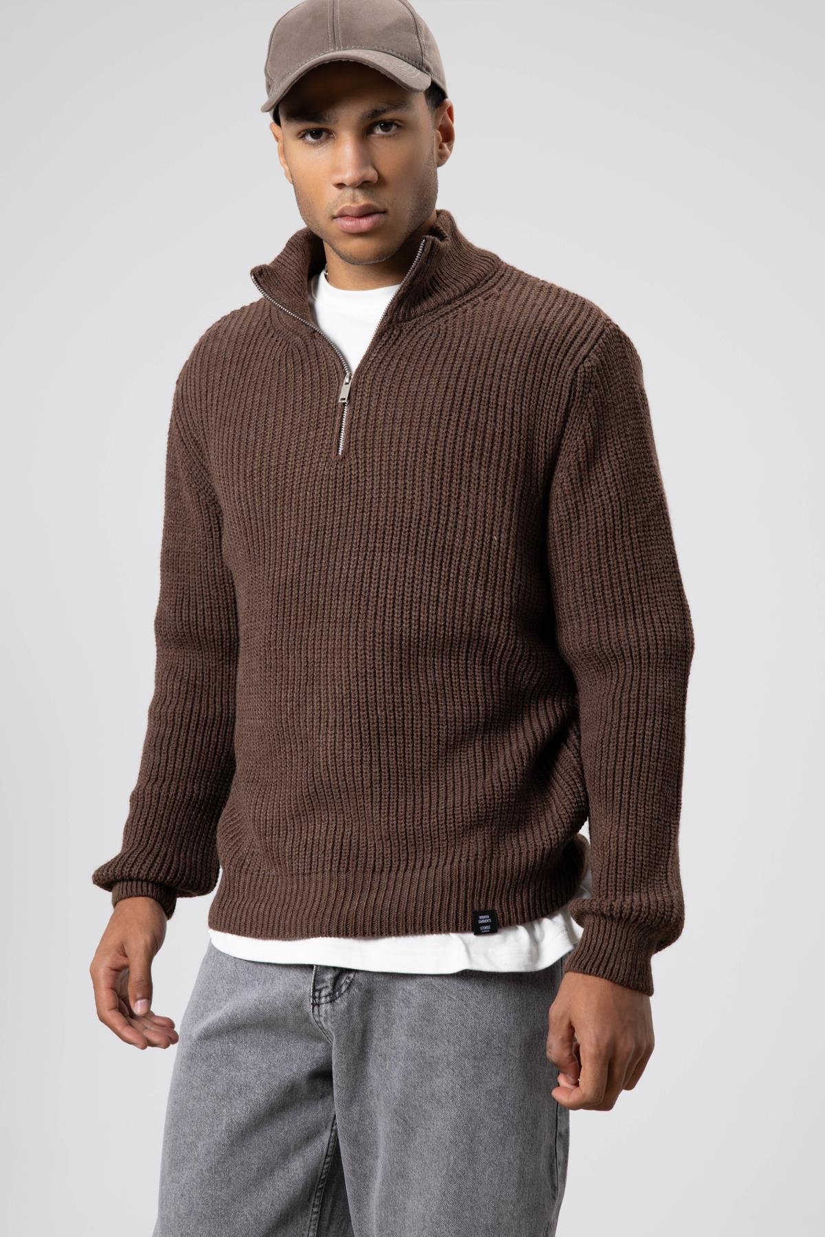 Fermuarlı Örme Triko Kazak Vizon (V60-11)