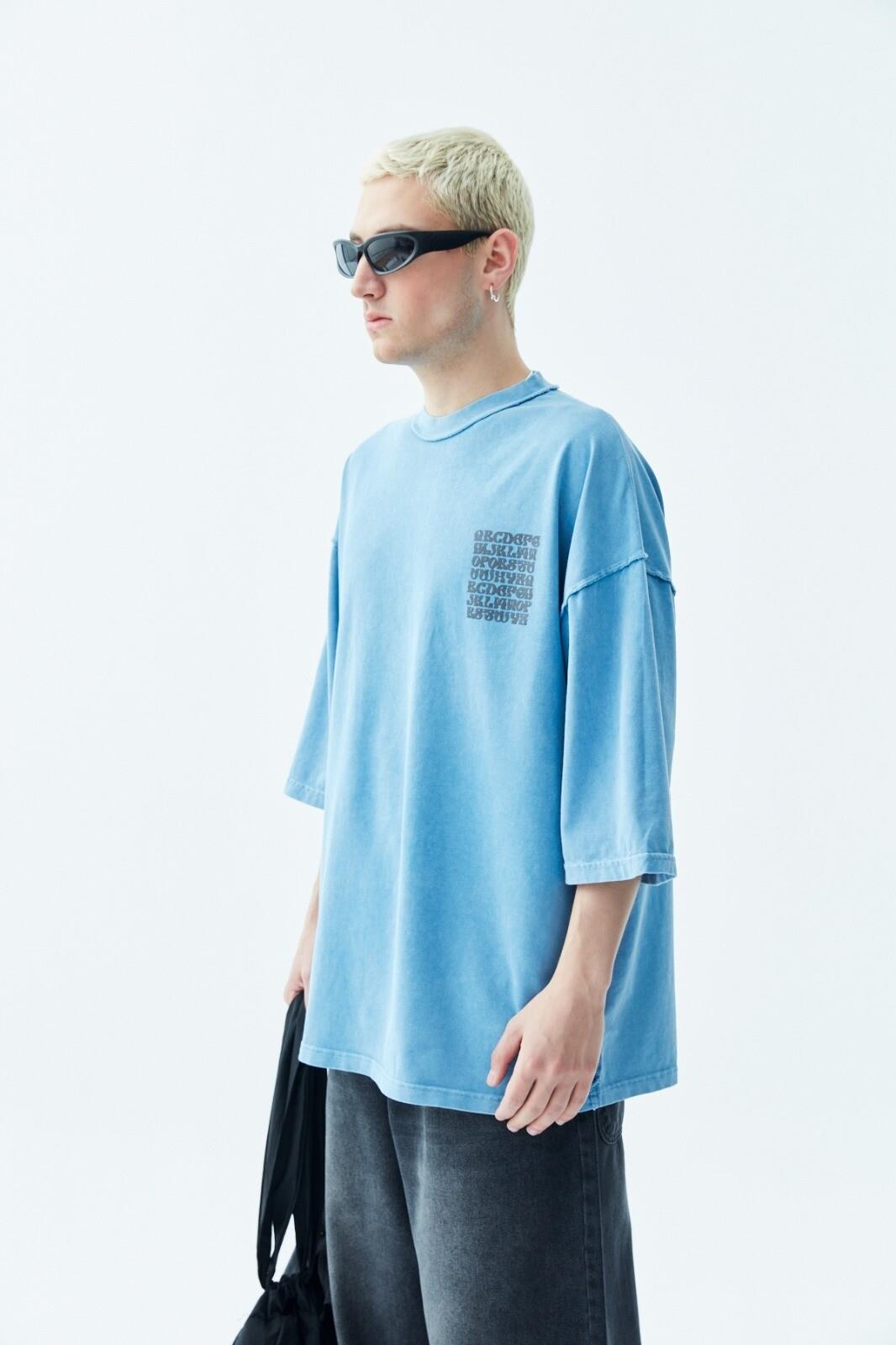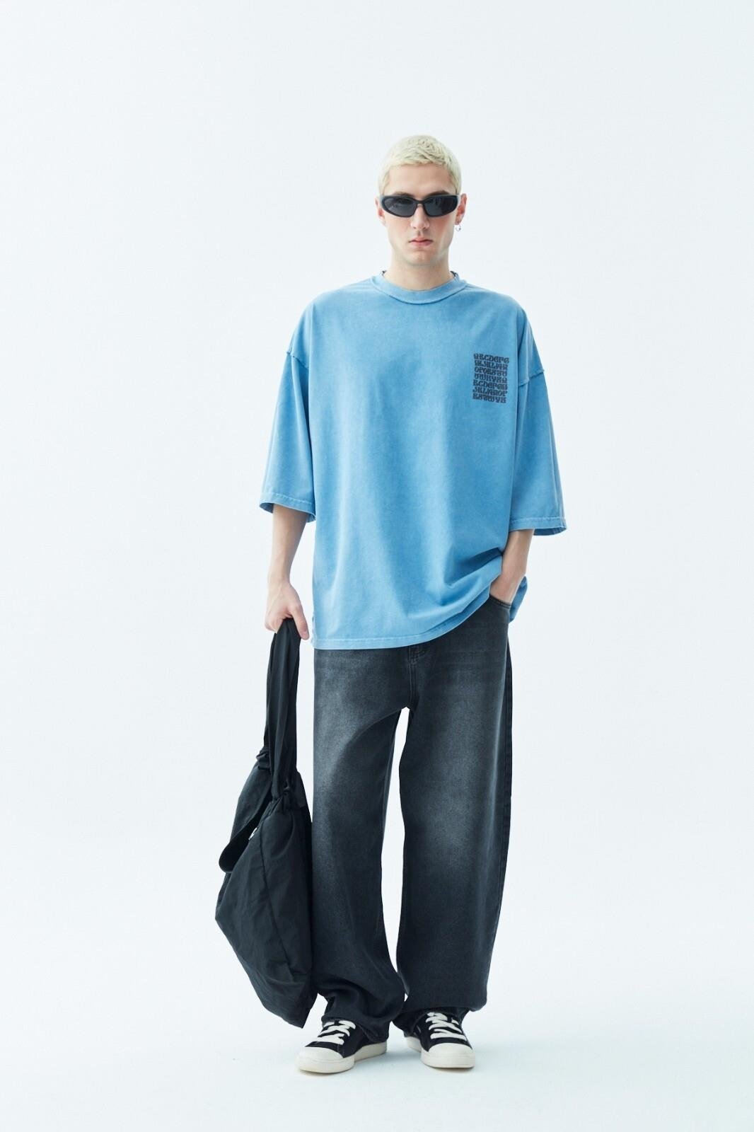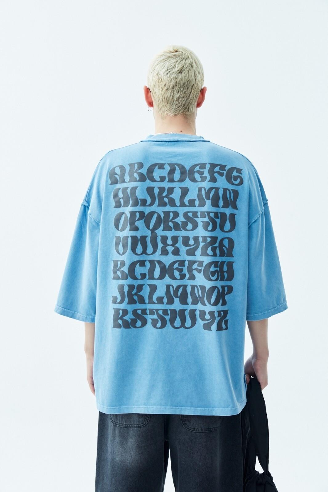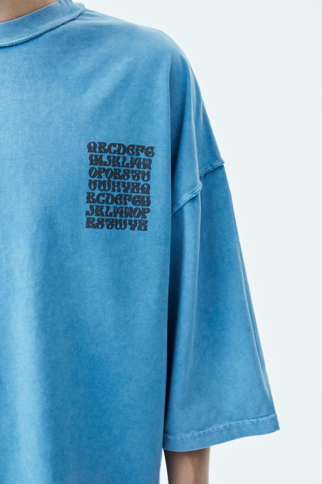 Yıkamalı Arka Baskılı Oversize Tişört -Açık Mavi Mavi (40-660)
