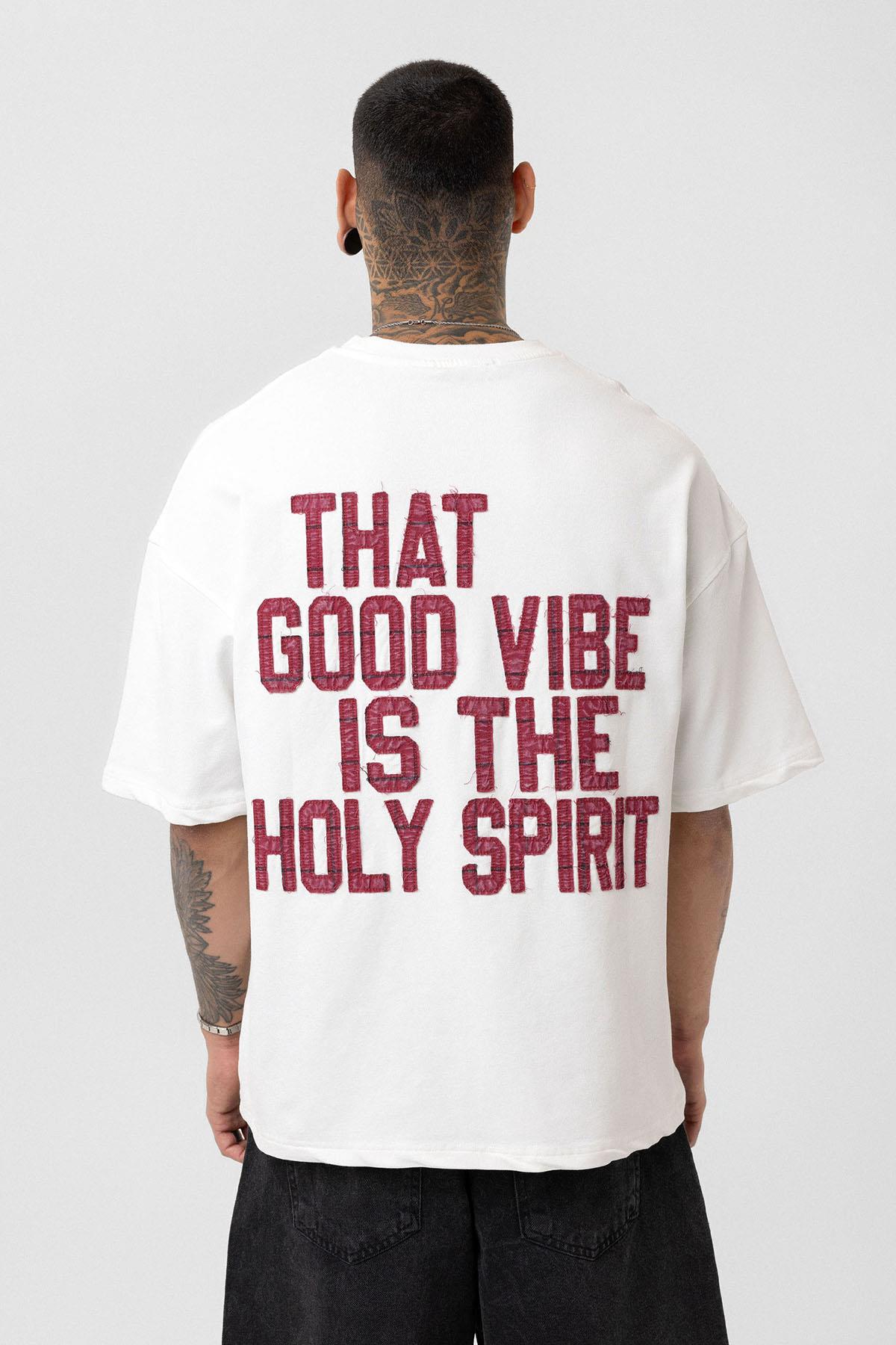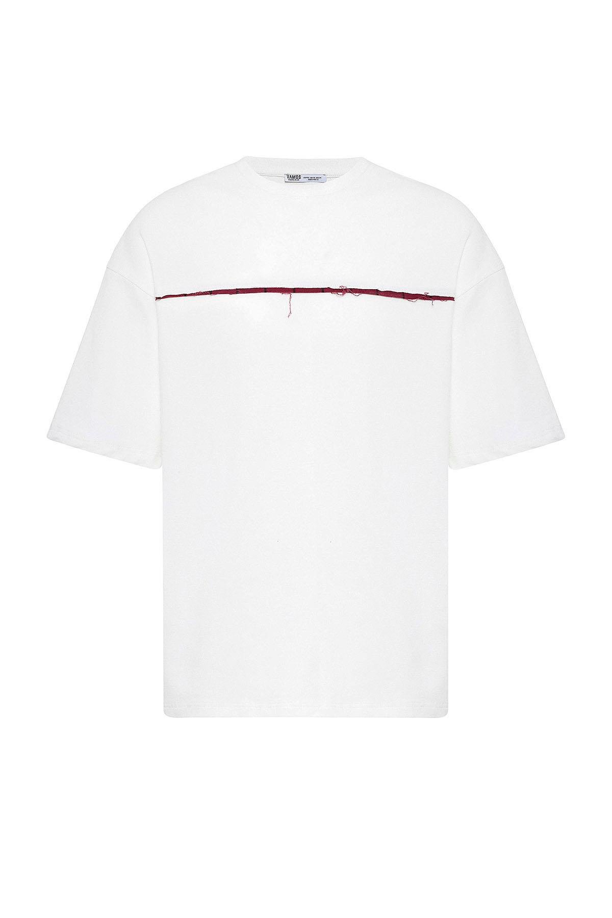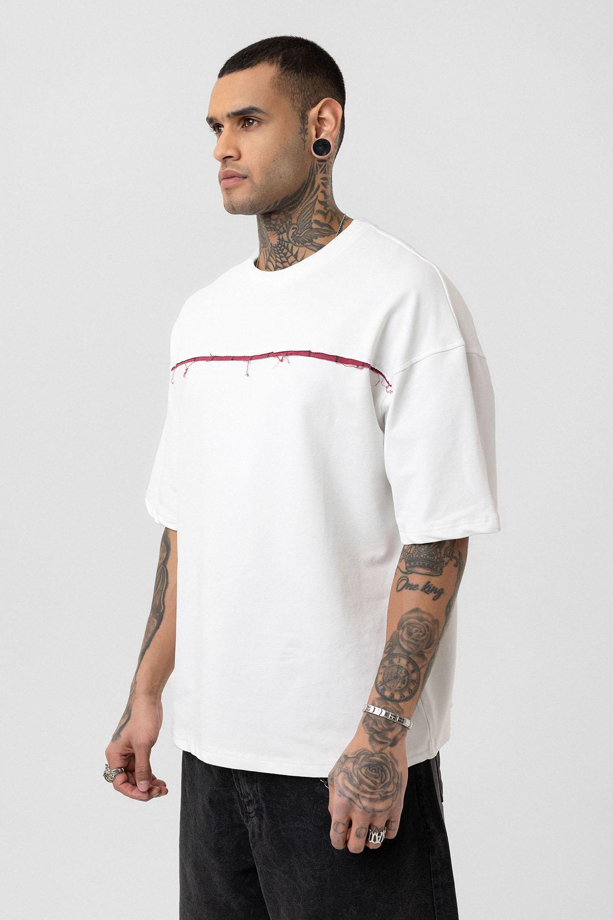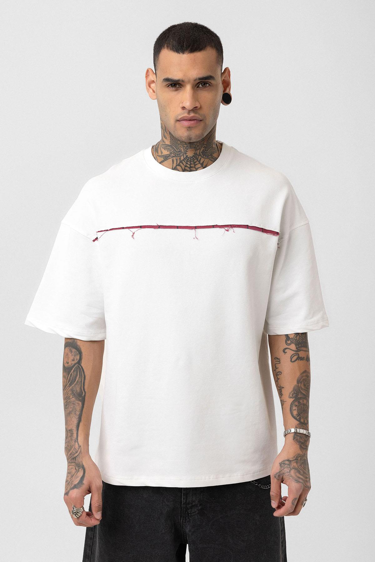 Yıkamalı Arka Baskılı Oversize Tişört Ekru (V70-31)