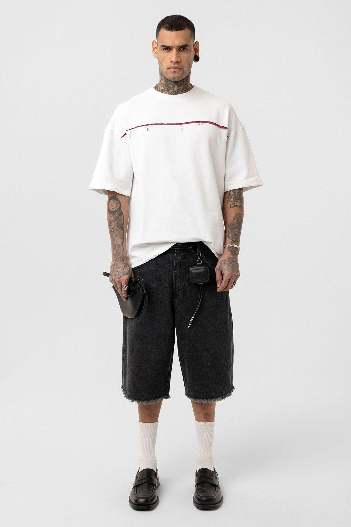 Yıkamalı Arka Baskılı Oversize Tişört Ekru Yıkamalı Arka Baskılı Oversize Tişört Siyah