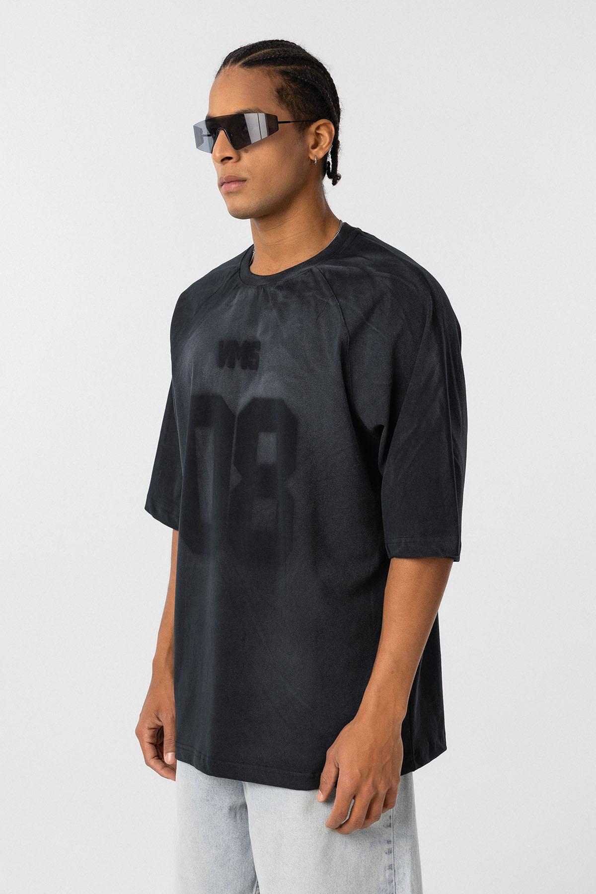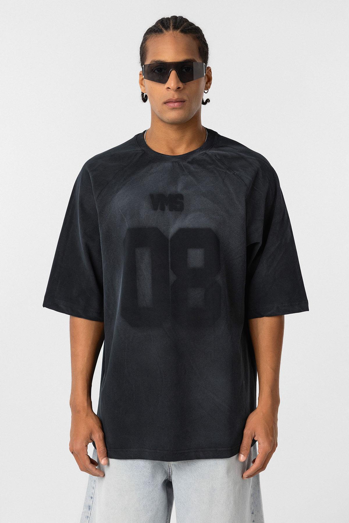 Yıkamalı Ön Baskılı Oversize Tişört Siyah (V70-44)