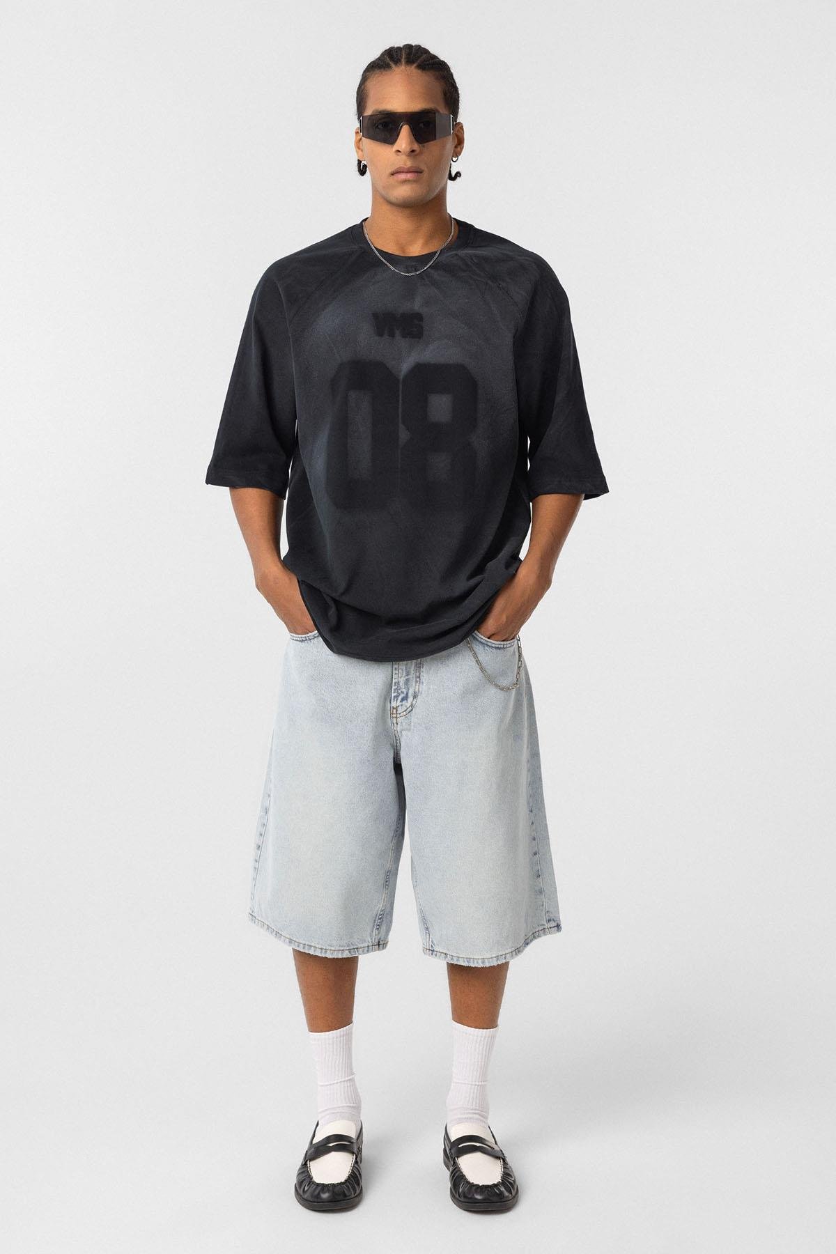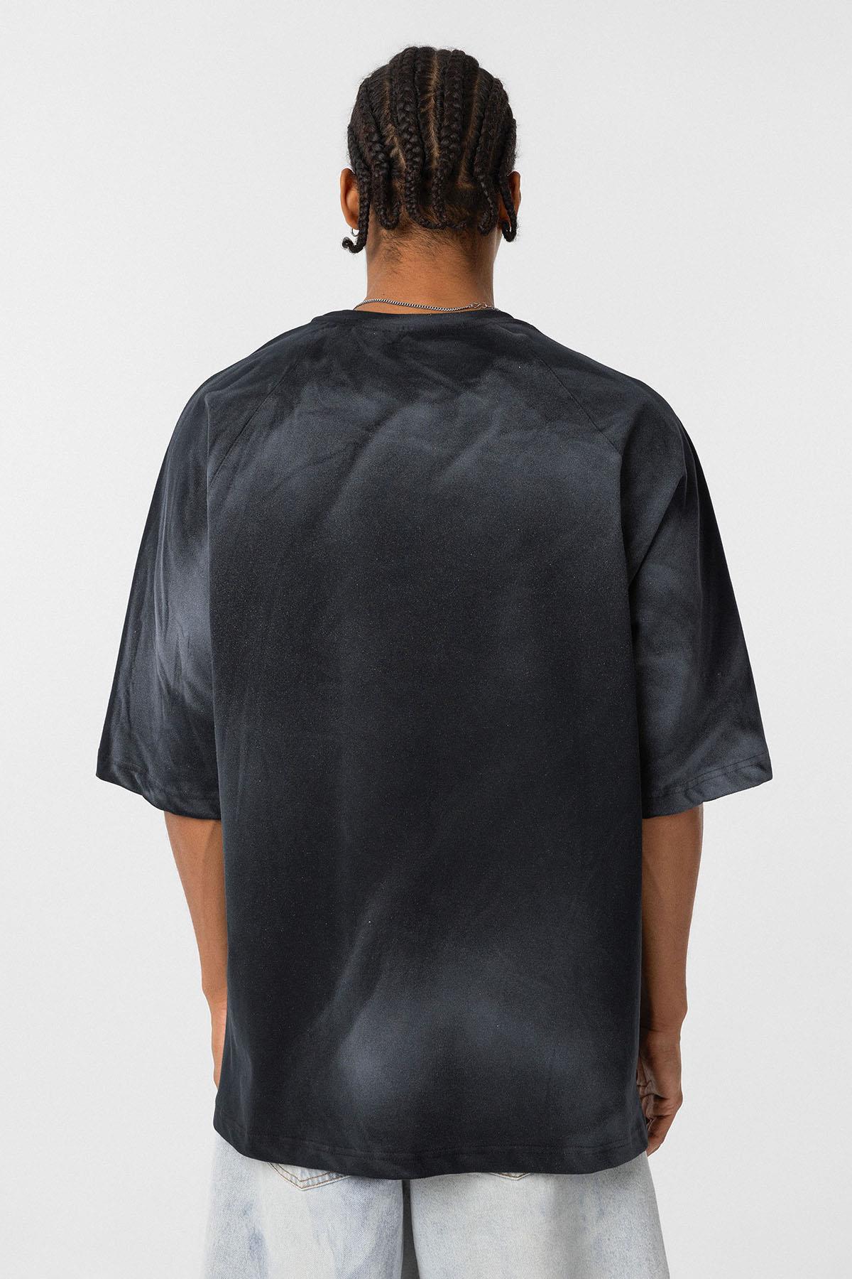 Yıkamalı Ön Baskılı Oversize Tişört Siyah