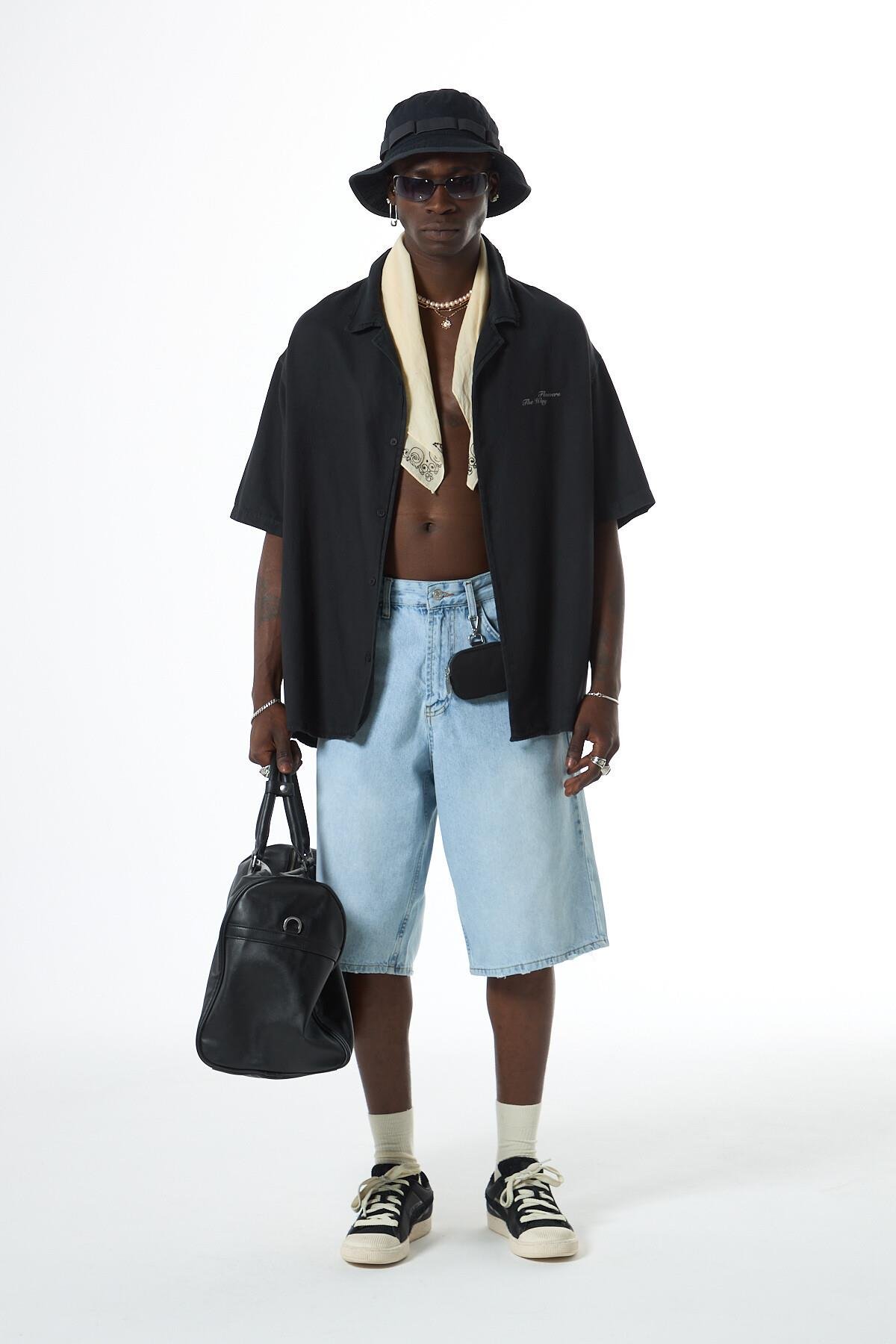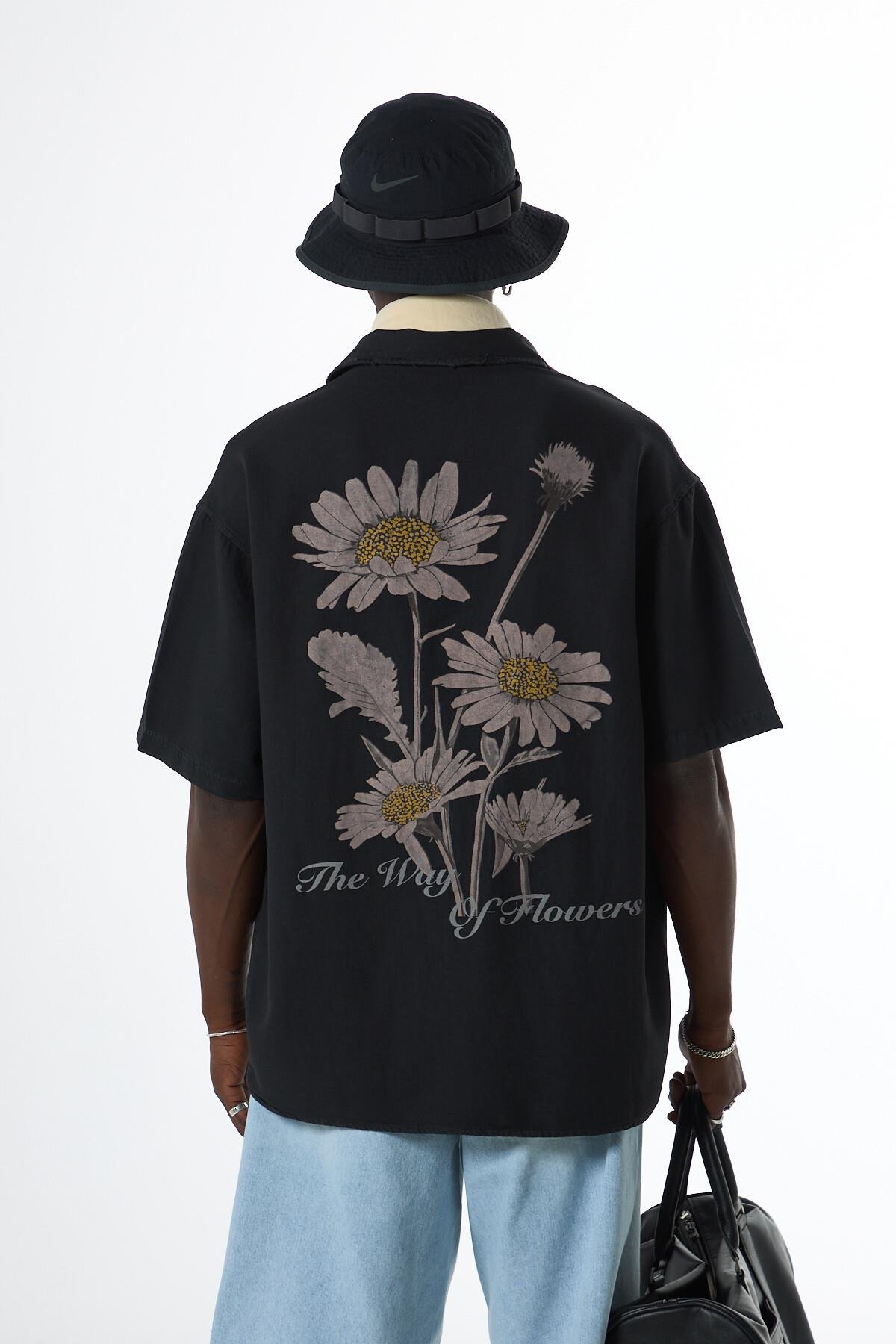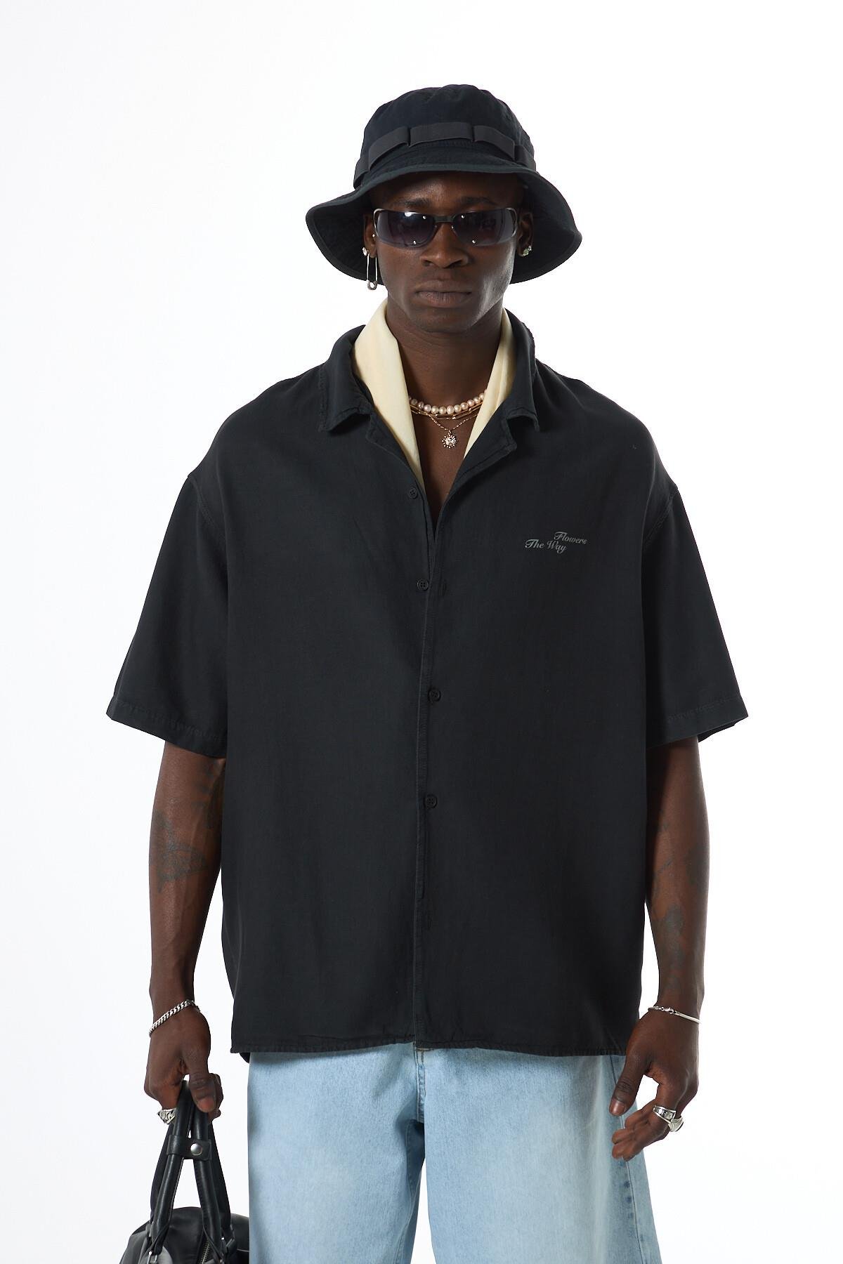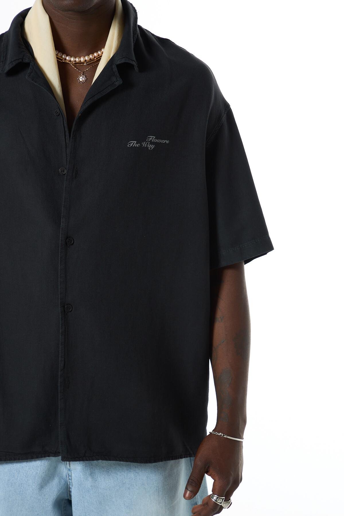 Yıkamalı Oversize Arka Baskılı Kısa Kol Cepsiz Gömlek Siyah (40-836)