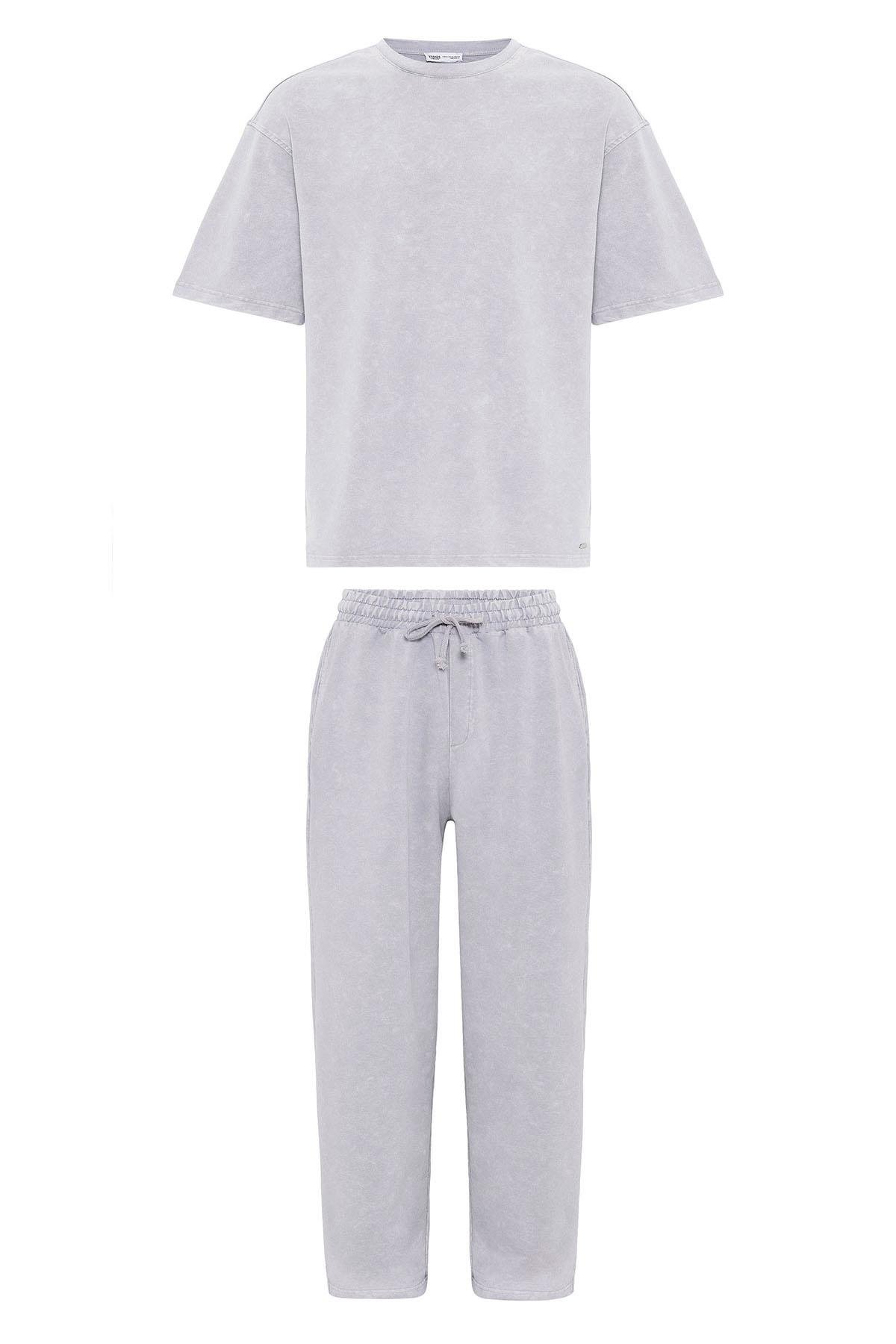 Yıkamalı Oversize Eşofman Takım Boyama Gri (V90-01)