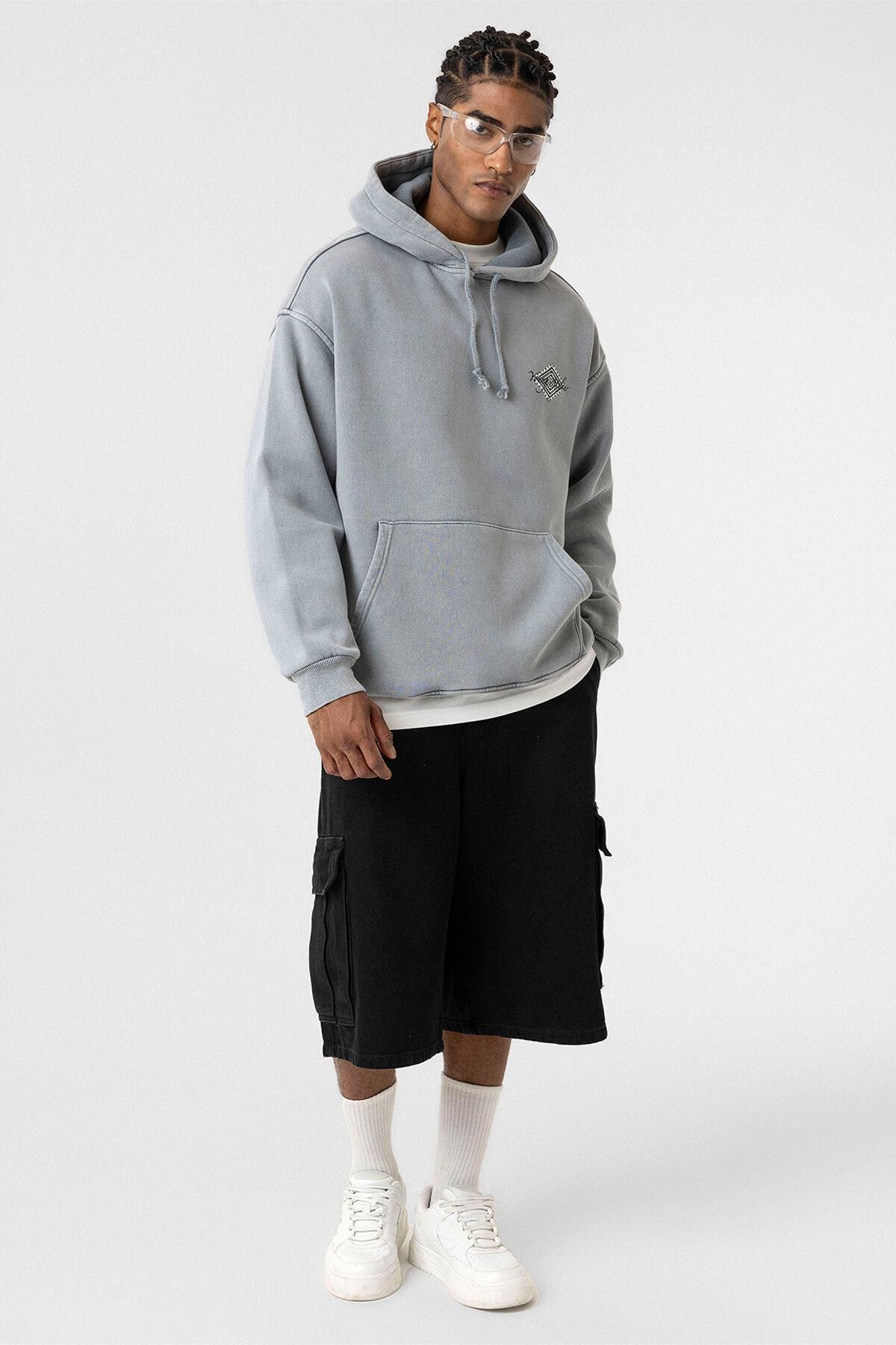 Yıkamalı Sırt Baskılı Oversize Sweatshirt Taş Yıkamalı Sırt Baskılı Oversize Sweatshirt Yeşil Yıkamalı Sırt Baskılı Oversize Sweatshirt Açık Gri