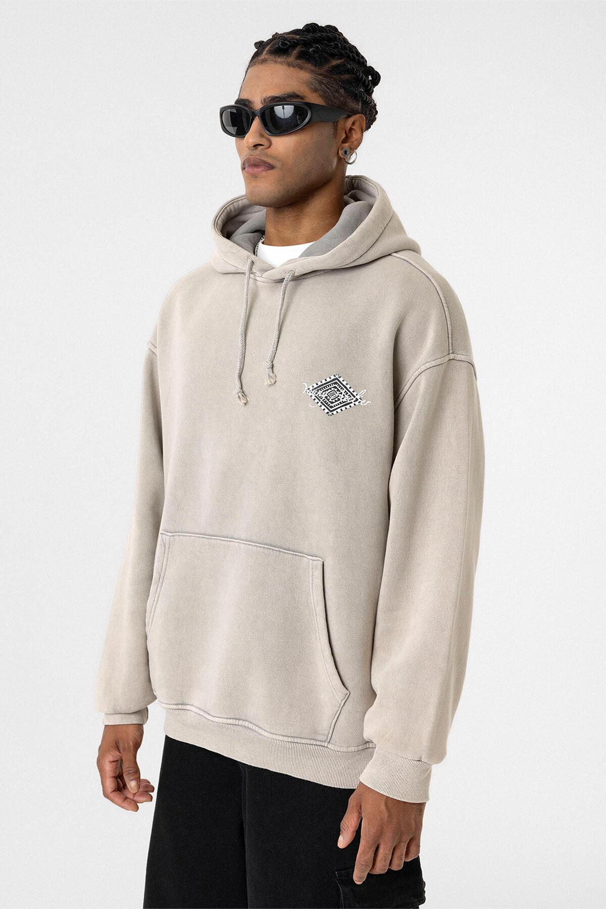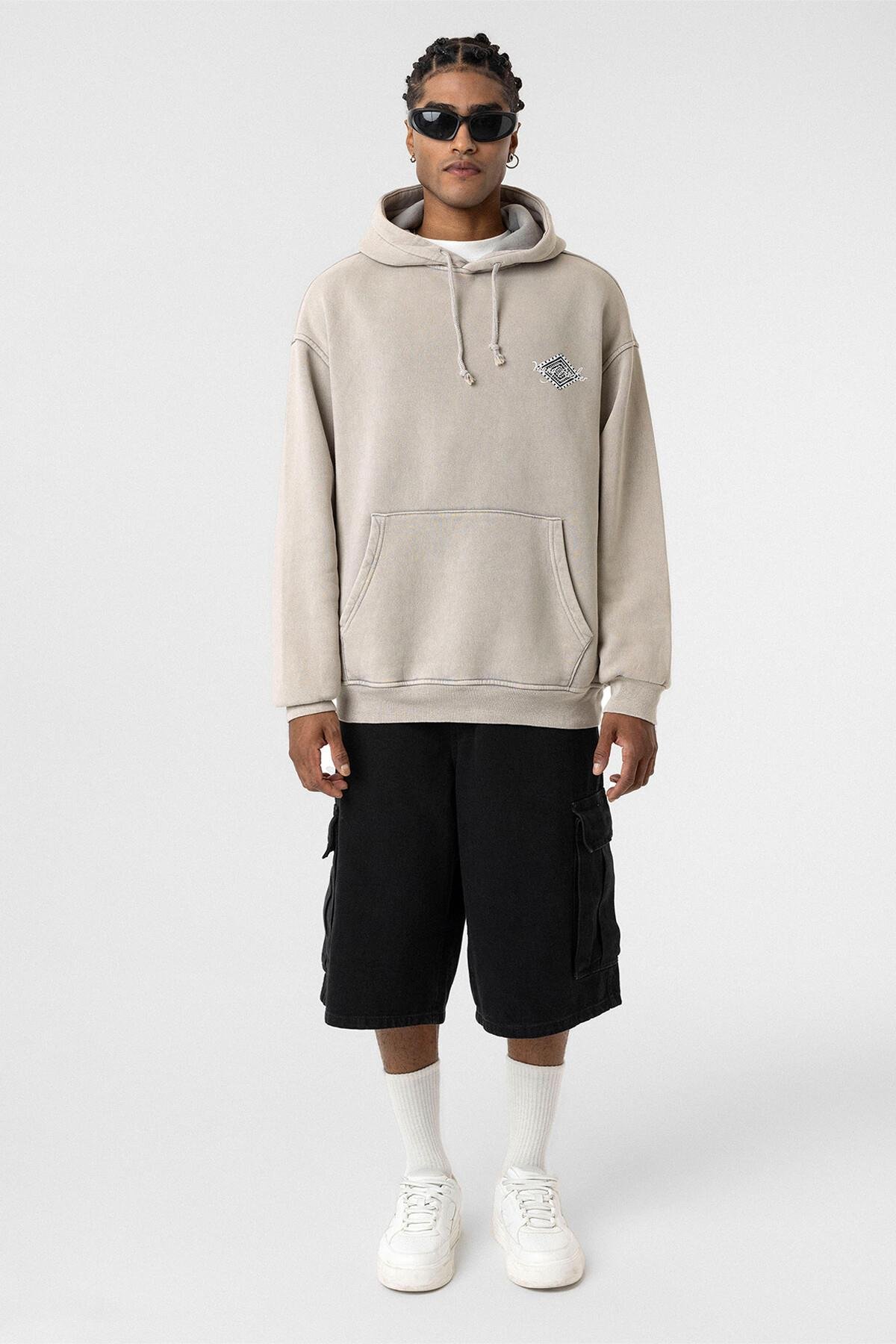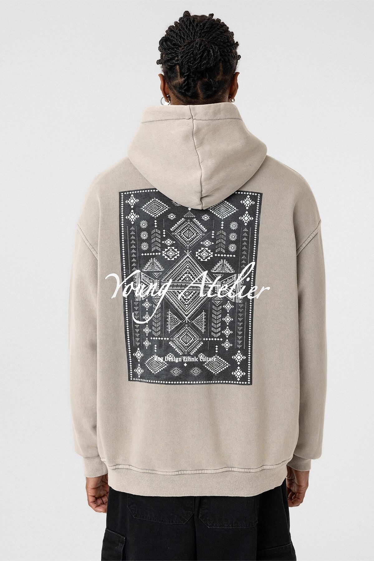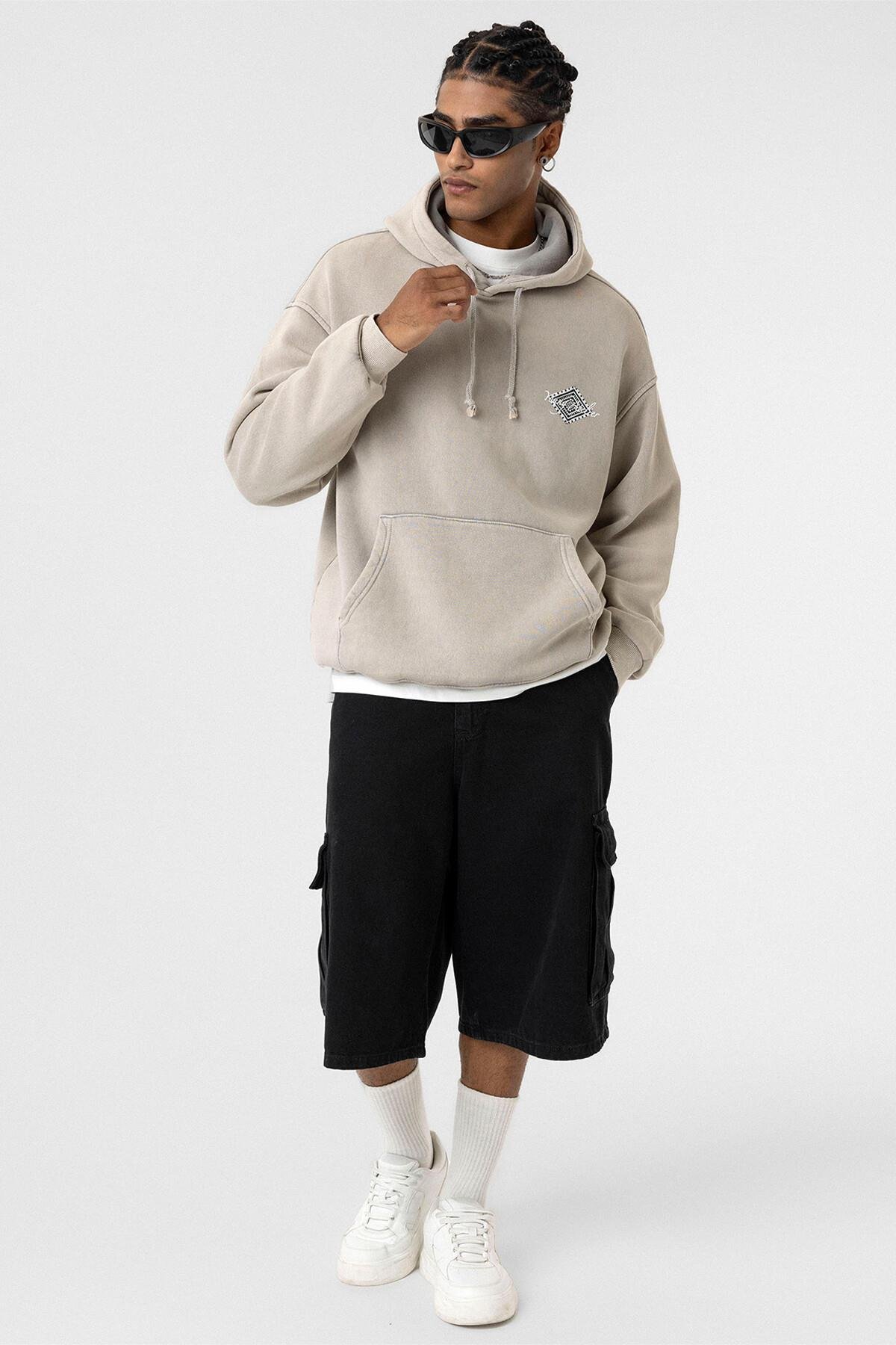 Yıkamalı Sırt Baskılı Oversize Sweatshirt Taş (V10-69)