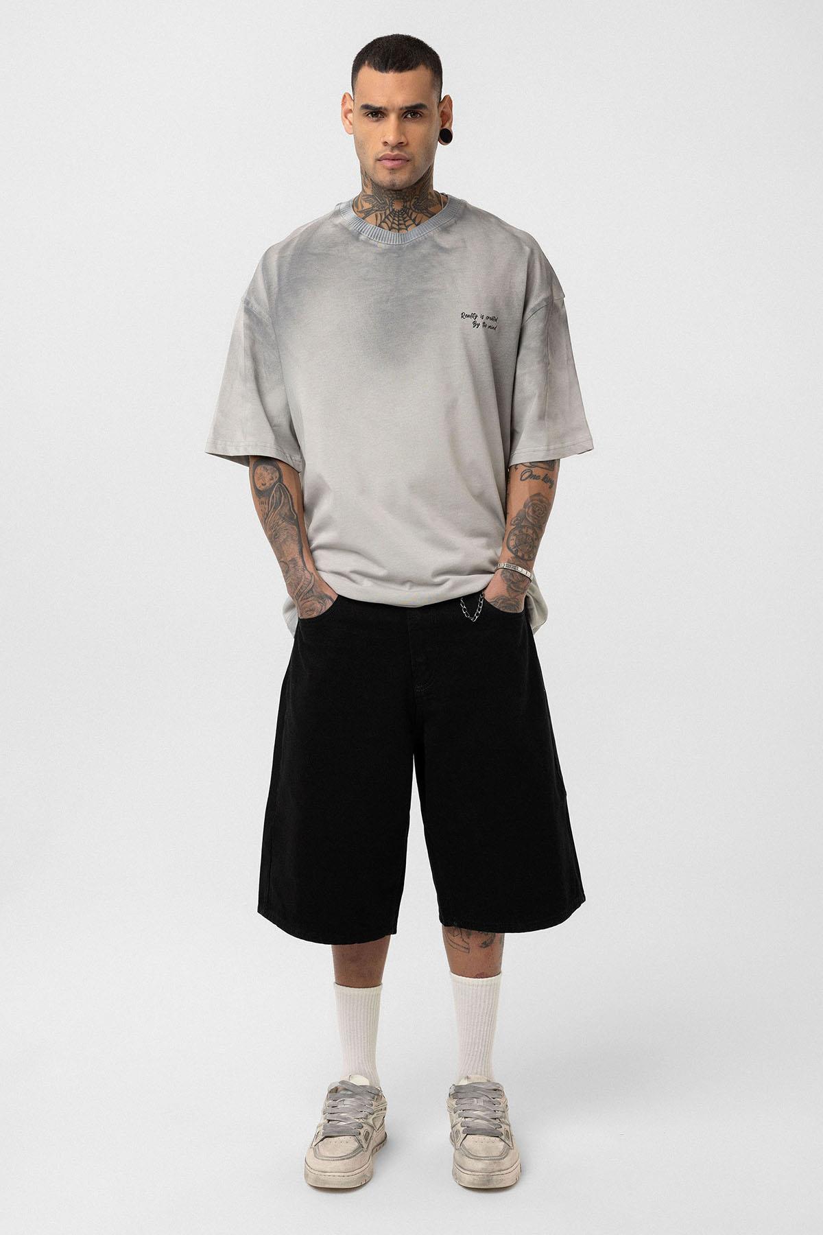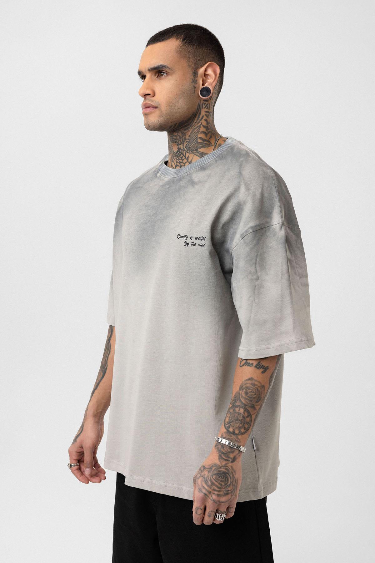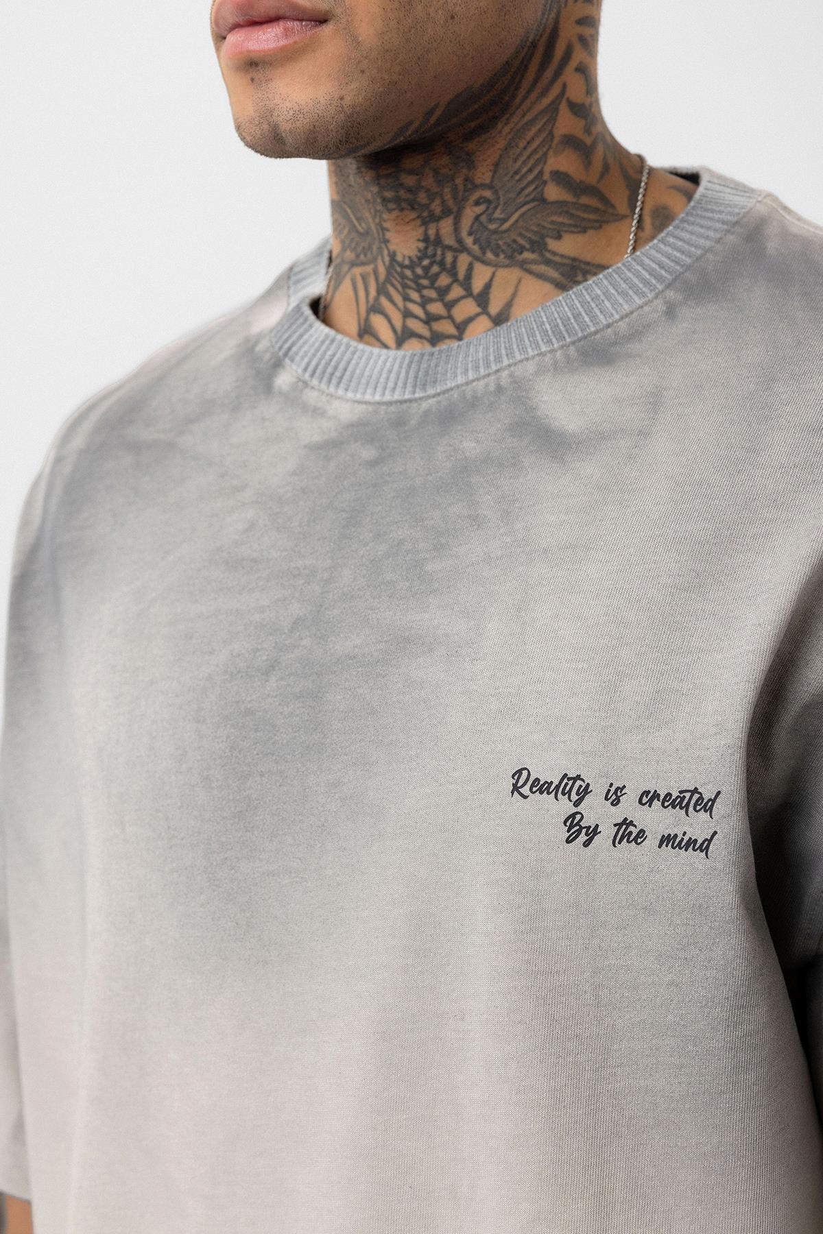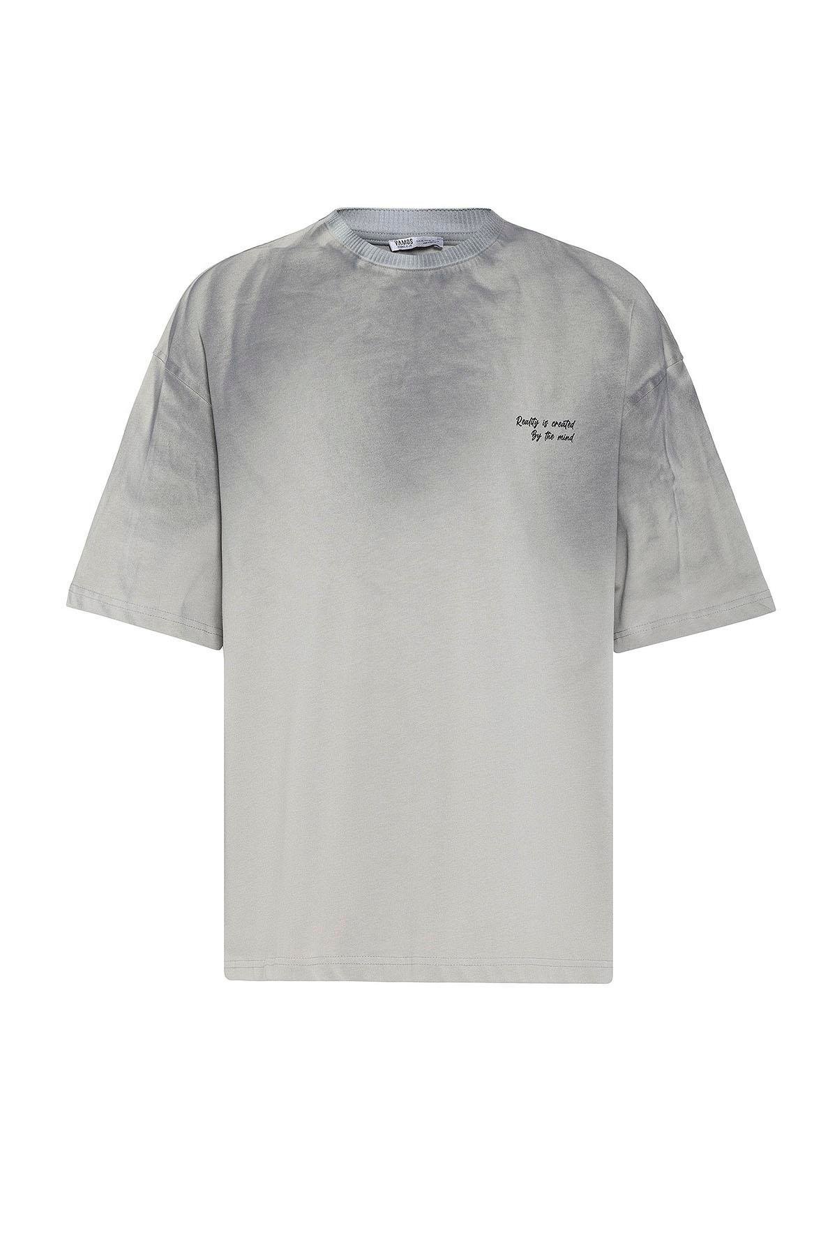Yıkamalı Yazı Detaylı Oversize Tişört Gri (V70-32)