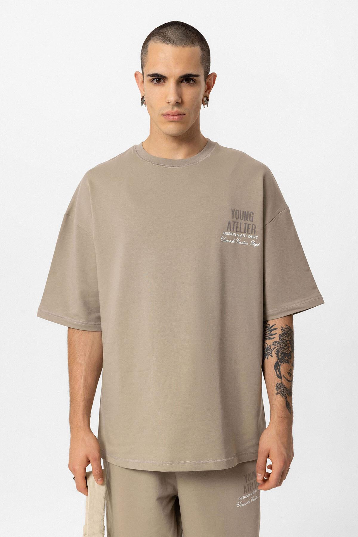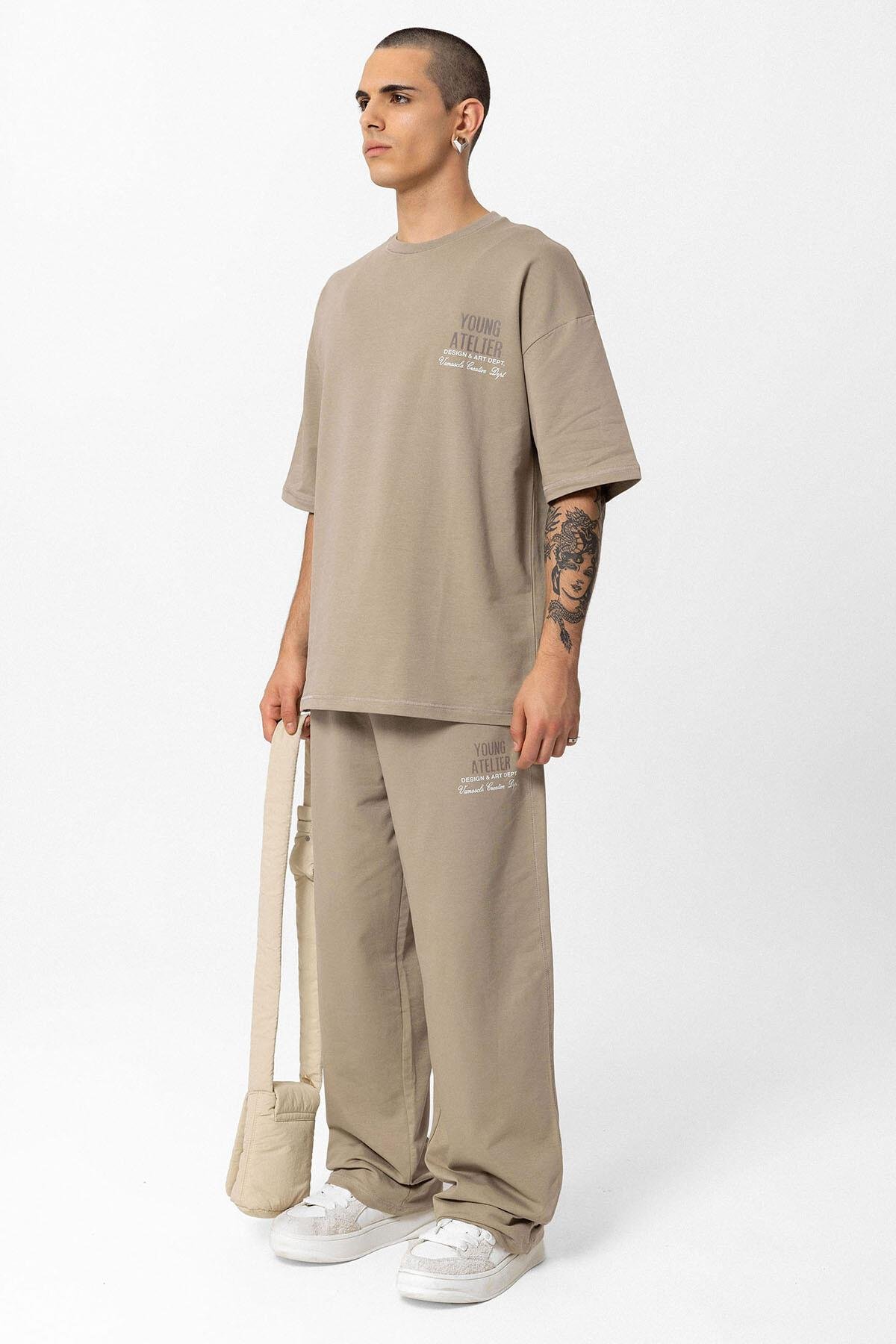 Young Atelıer Baskılı Oversize Eşofman Takım Vizon (40-603)